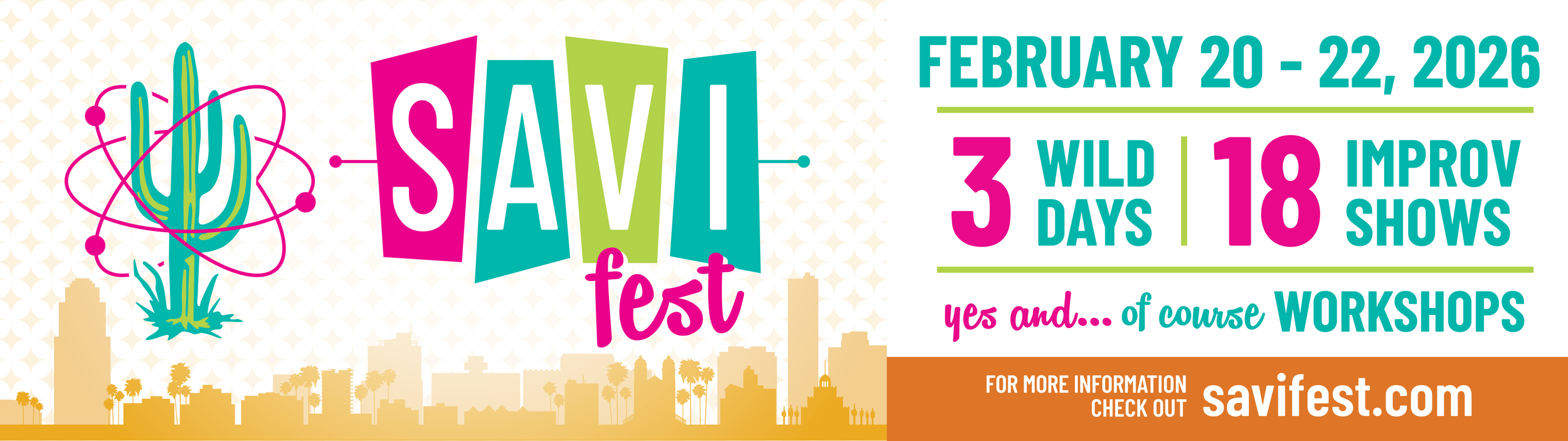 SAVI is a creative partnership between Sonoran All-Valley Improv, LLC and SAVI Collective, Inc. a 501(c)(3) nonprofit organization. Together, we champion the art of improvisation through SAVI FEST — a desert-born celebration of connection, creativity, and community. From bold performances to inspiring workshops, SAVI unites improvisers from around the world in the spirit of play and collaboration.